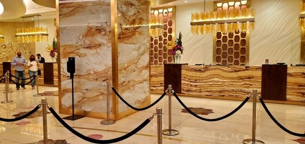 Our first hotel is Sahara Las Vegas, the grand dame with a world-famous name. Sahara has been fully renovated and continues to evolve, with new restaurants and a relaunch of Magic Mike Live coming in the months ahead. Despite having over 1,600 rooms spread out over three towers, Sahara is one of the easiest in terms of accessibility. Elevators at their east parking garage deposit you directly across from the Paradise Road entrance. From there, the reservation desk is immediately to your right. Then you're mere steps away from two of their three elevator shafts.