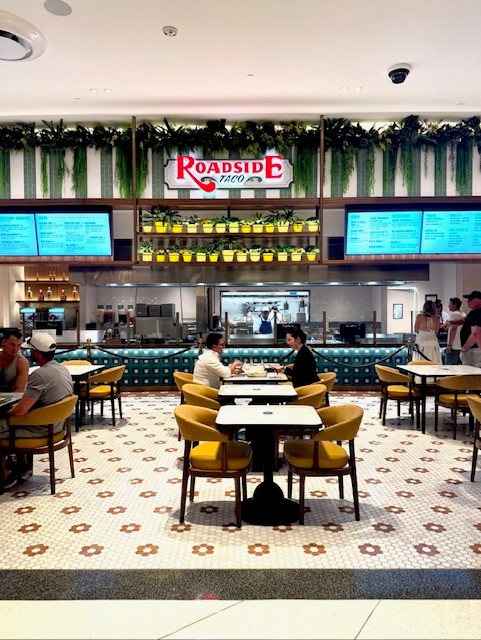 There, you can choose from multiple food concepts like: NYC celebrity chef Josh Capon’s Capon’s Burgers; Roadside Taco out of LA; Miami imports El Bagel and Miami Slice; and the premium sushi-focused Bar Ito, sister-concept to the above-mentioned Ito.