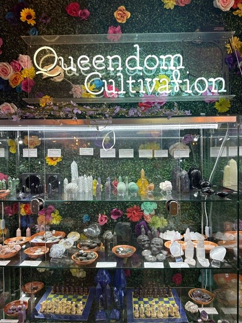 Go to Queendom to buy crystals for “loss and bereavement, exhaustion, and anxiety relief.” The shop also has chakra body oils, “intention” bracelets, incense, herbs, meditation pillows, smartly packaged gift boxes, and T-shirts. My favorite is emblazoned with the phrase “Master Manifestor.”