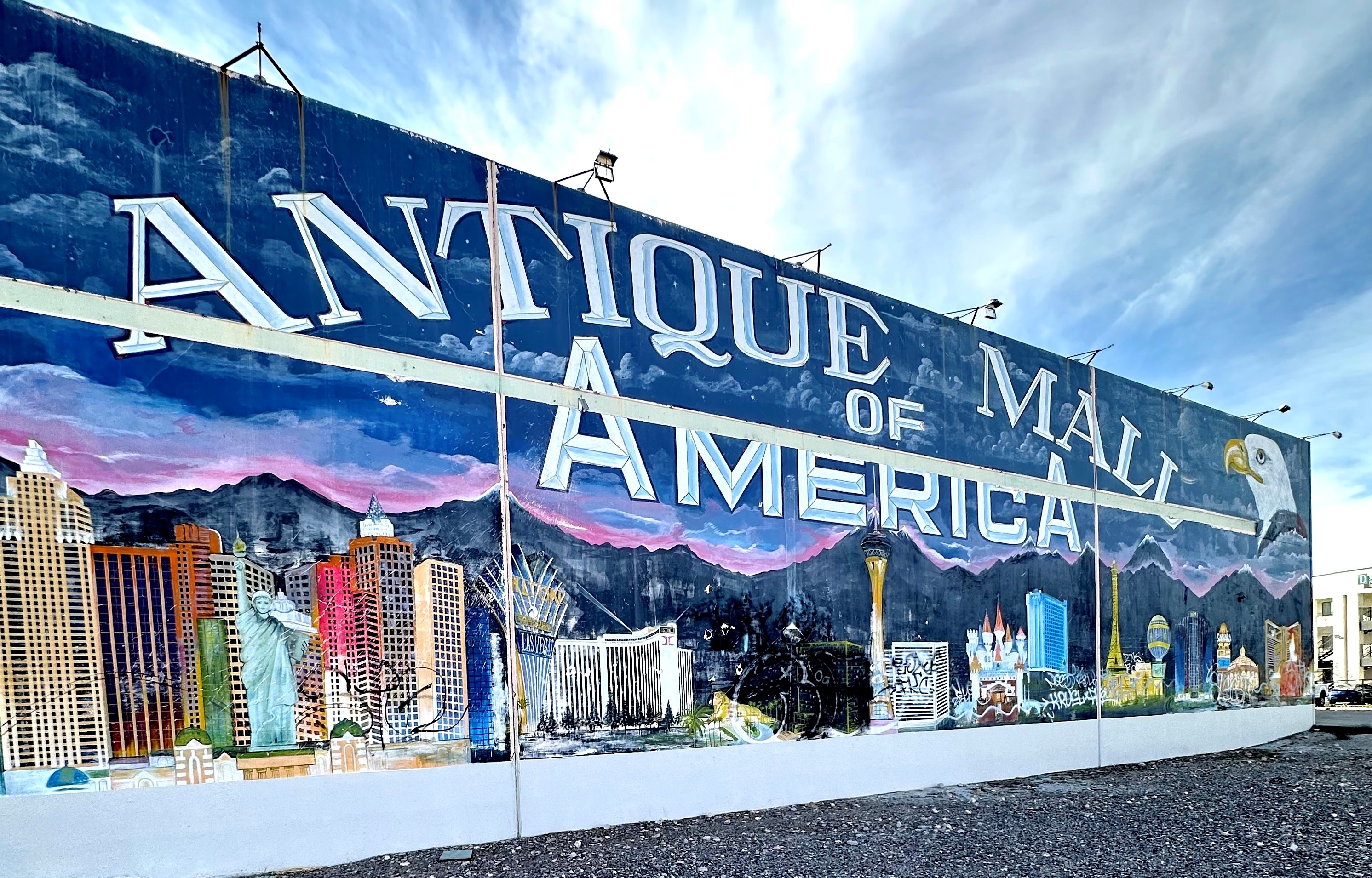 My brain recently went into complete overdrive while visiting (for the first time) the Antique Mall of America on S Las Vegas Blvd near the Southpoint and Silverton hotels. It’s a two-level space—with a staggering 43,000 square feet of antiques and collectibles—that you can’t miss thanks to the massive mural on the outside illustrating The Strip.