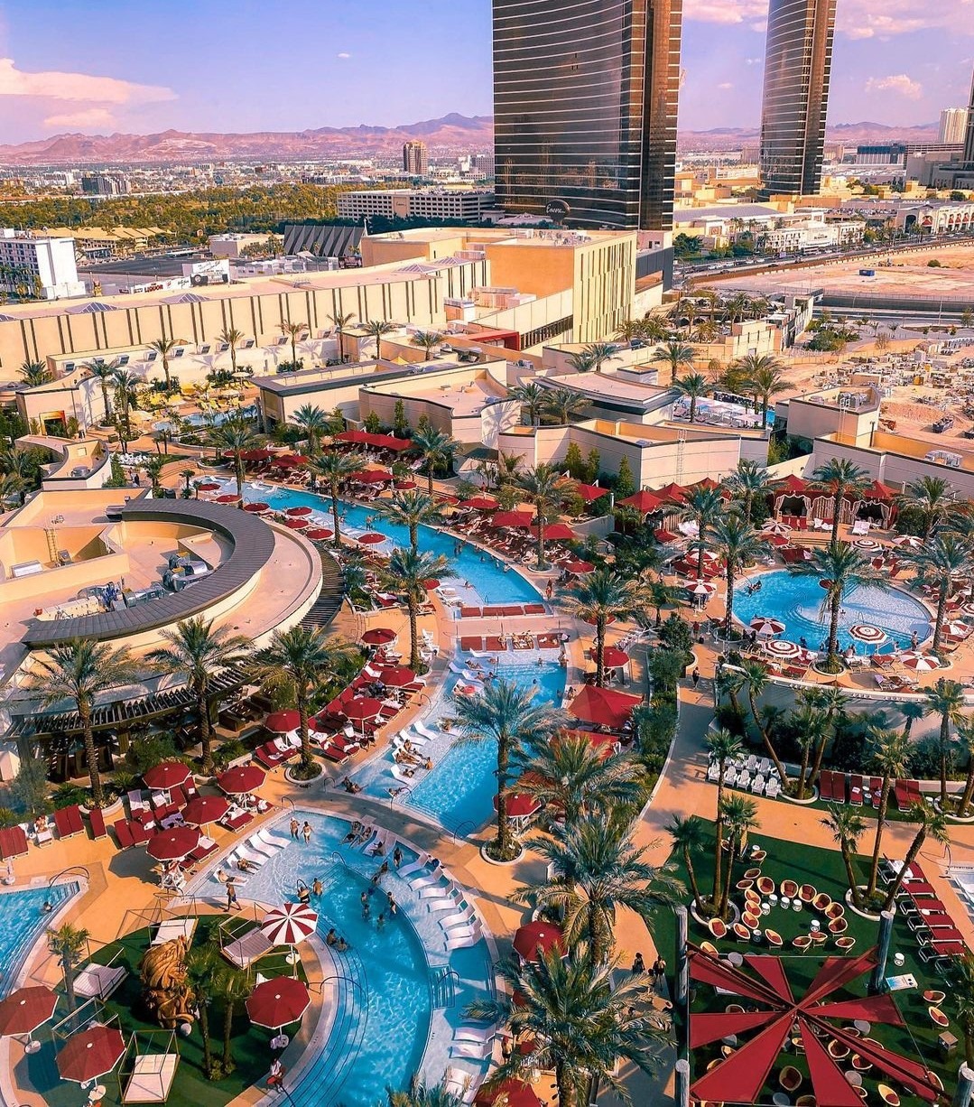 This pool is located in the Resorts World Las Vegas, and it's the largest in Vegas as it spans a 5.5-acre space with seven different pools and an infinity-edged pool – the only one on the Strip. For those Tiësto fans out there, it's an ideal venue to party.