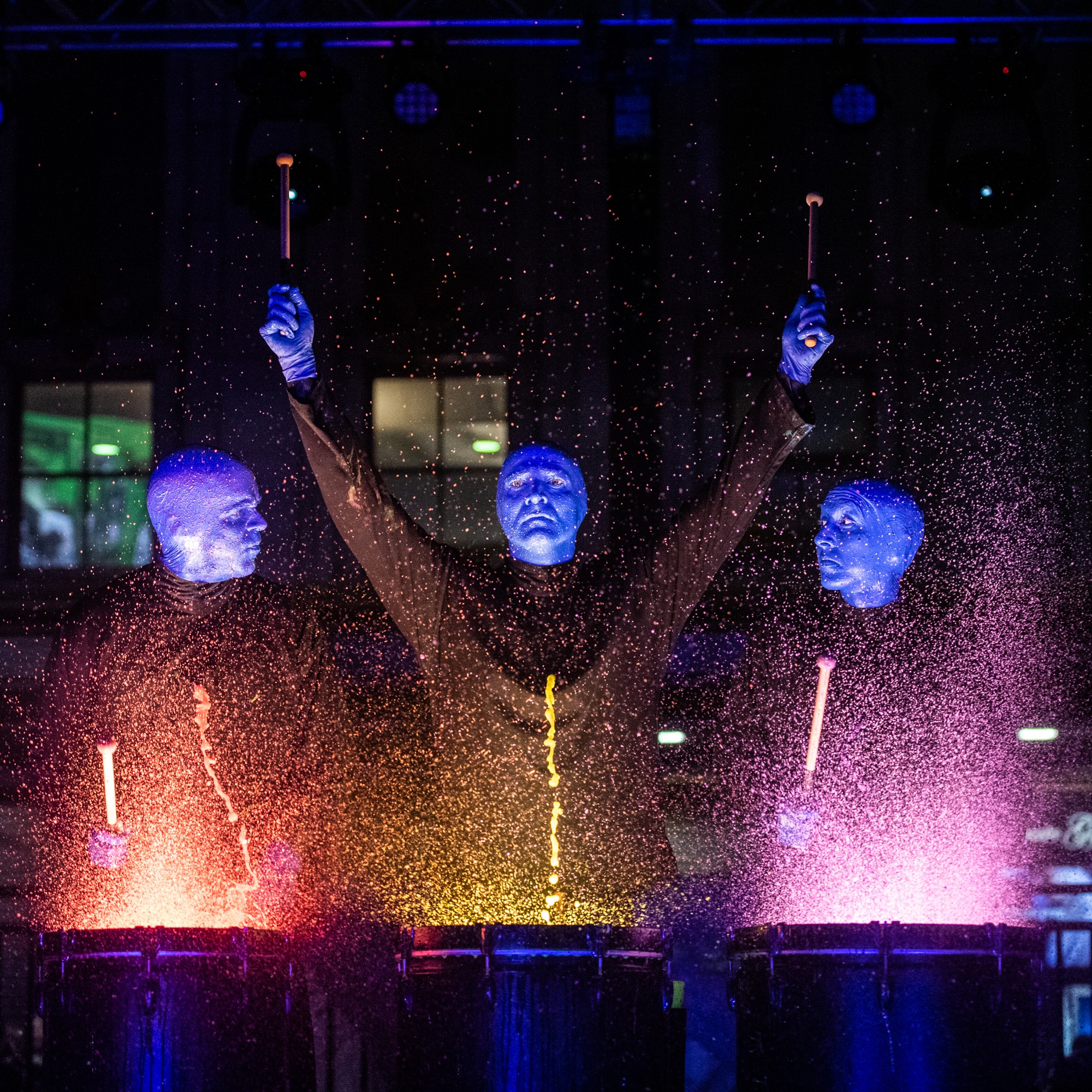 The Blue Men offer a sensory experience. The amazing show at the Luxor is a perfect blend of comedy, variety, and art. Blue Man Group is known for using simple props backed by state-of-the-art visual projections and a live band.