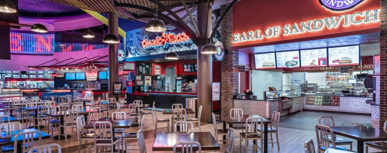 The Eatery is an exciting food court with delicious quick bites for the entire family across the Sports Book. You’ll find popular food chains like McDonald’s, Panda Express, The Coffee Bean, and Earl of Sandwich. It is your go-to place for classic Big Mac, chicken nuggets, Chinese-inspired dishes, delicious salads and sandwiches, and steaming coffee and tea. McDonald’s is open 24/7, The Coffee Bean operates from 6 am to 8 pm, and the other food chains open from 11 am.