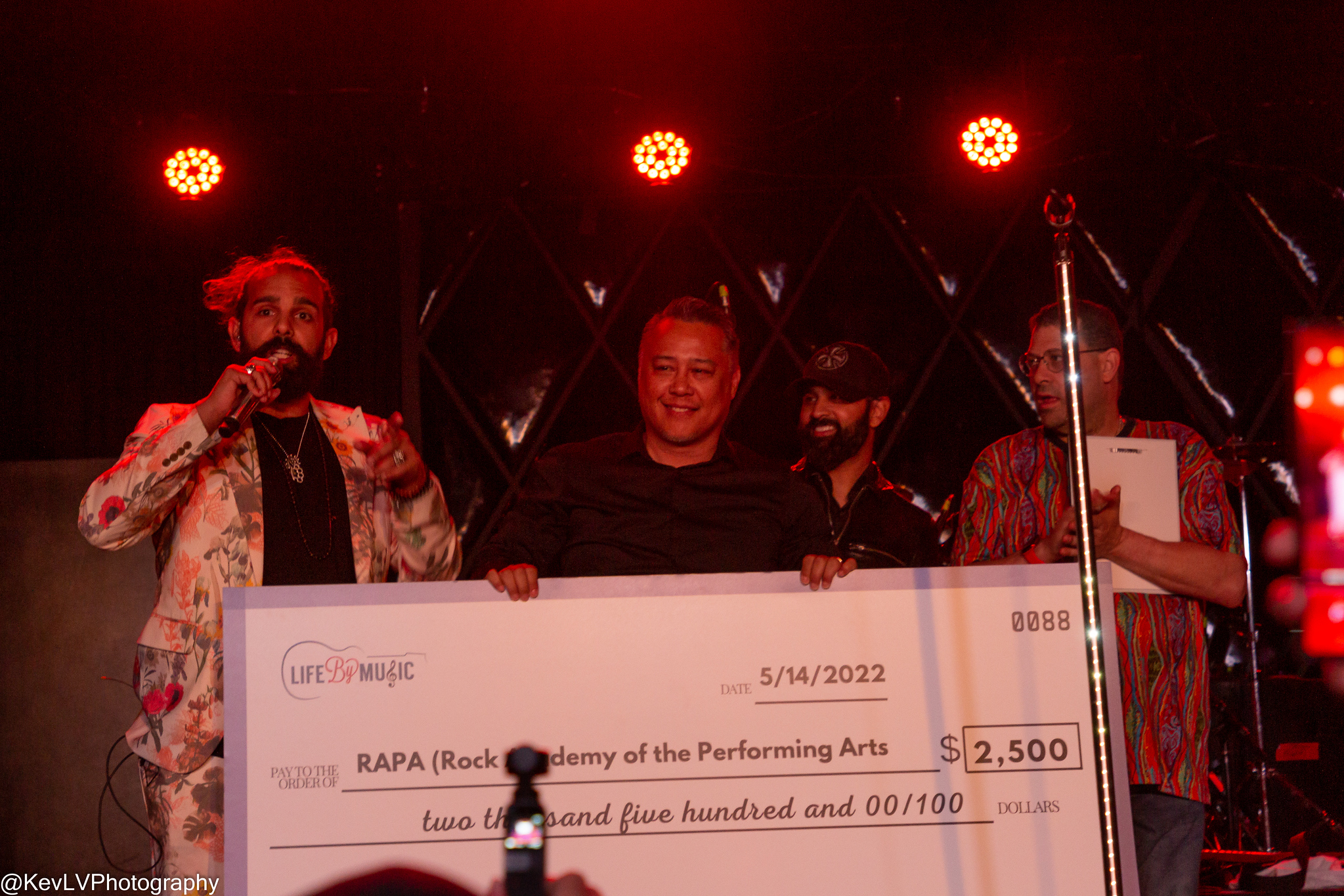 [caption id="attachment_44515" align="aligncenter" width="1024"] Ryan Patrick and Life by Music present a check to the music conservatory program, the Rock Academy of Performing Arts.[/caption]