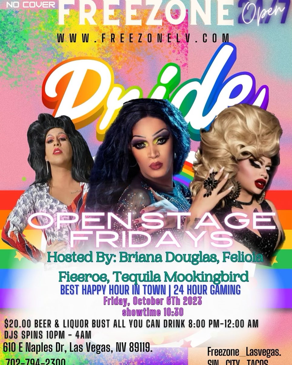 FreeZone is an LGBTQ bar and nightclub launched in 1996 in the Historic ‘’Fruitloop” – the informal name for the LGBTQ bars on Naples Street near UNLV. Guests can drink, dance, and sing on Mondays at 10 pm until everyone leaves.