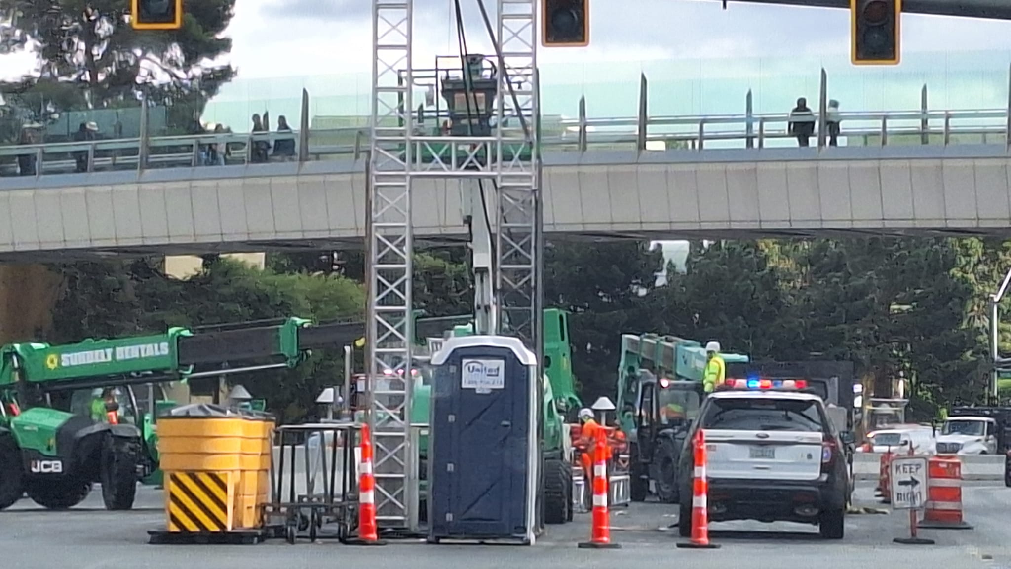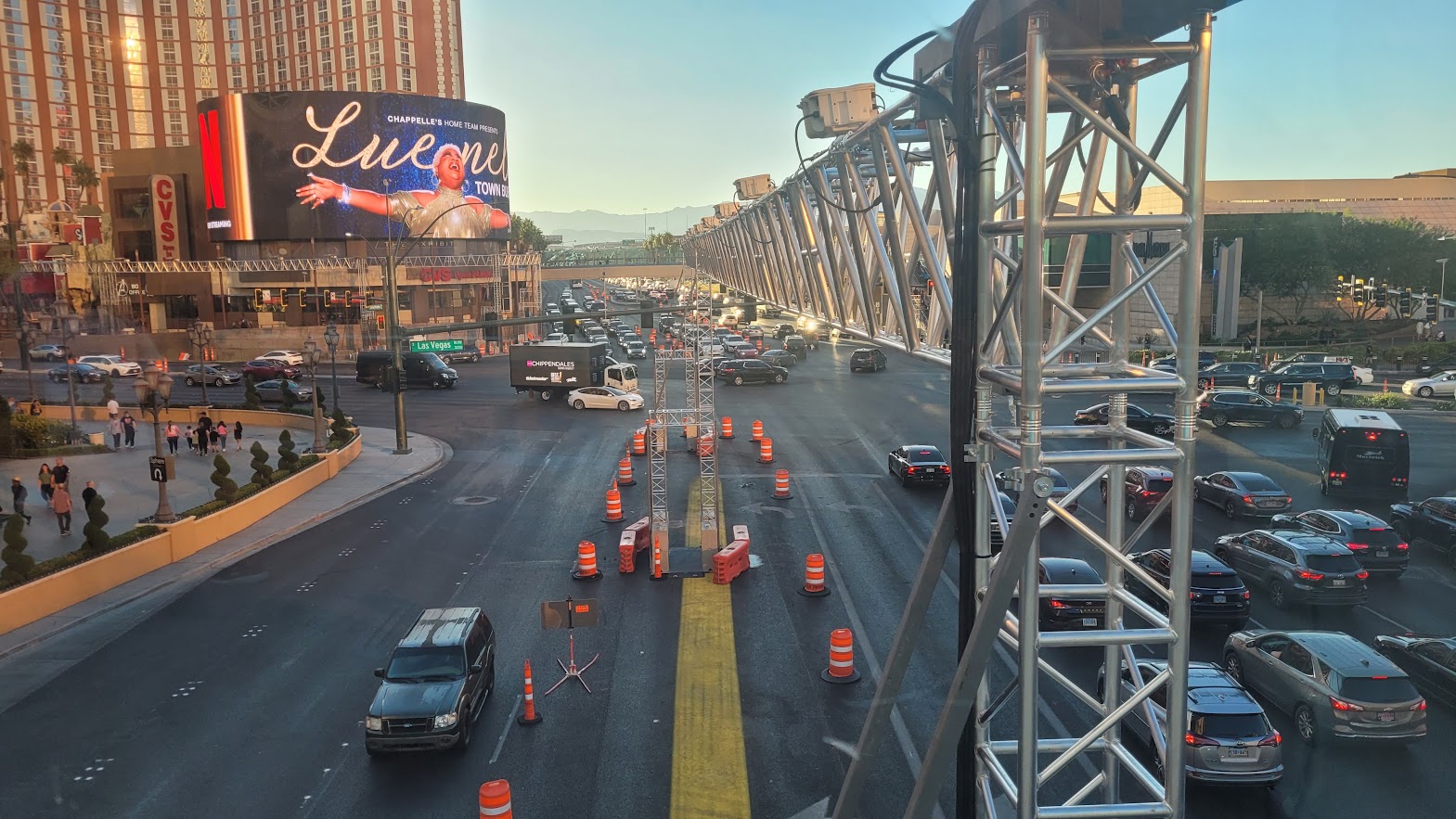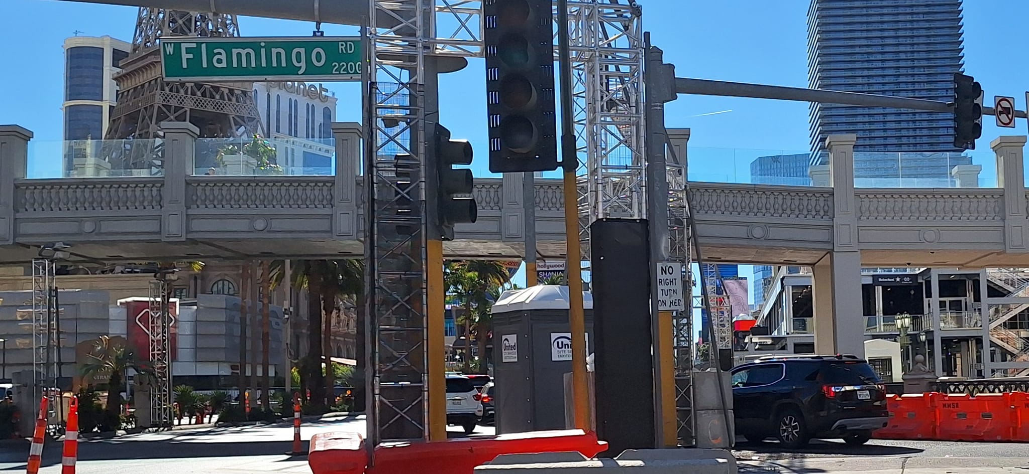 Take a good look at the photos above and below. Those are portable toilets in the middle of Las Vegas Boulevard. Not on the sidewalk, not hidden behind construction barriers. They're just two of many placed on the Strip as part of the two-month Formula 1 teardown.