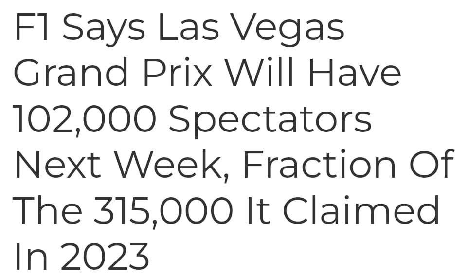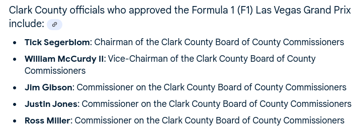 In 2023 I called for a financial audit of all country commissioners who suspiciously continue to back this madness. 2024's attendance plummeted to less than one-third of the inaugural event, yet talks move forward for a ten-year contract. The whole thing doesn't add up. Our residents must drive Formula 1 out of Las Vegas forever.