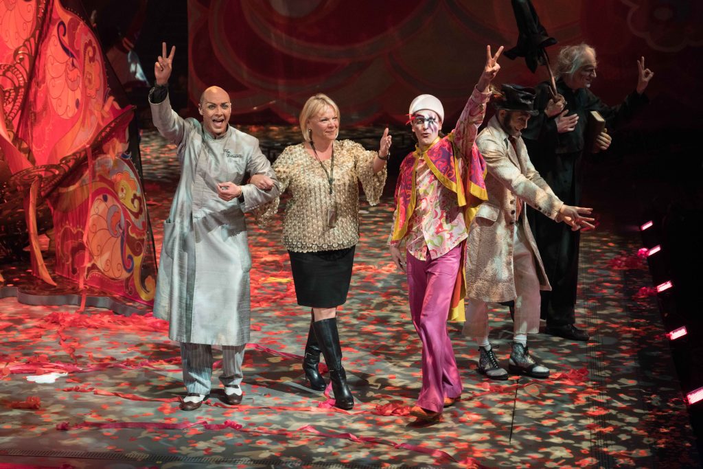 Company Manager Kim Scott (center) and cast members from The Beatles LOVE