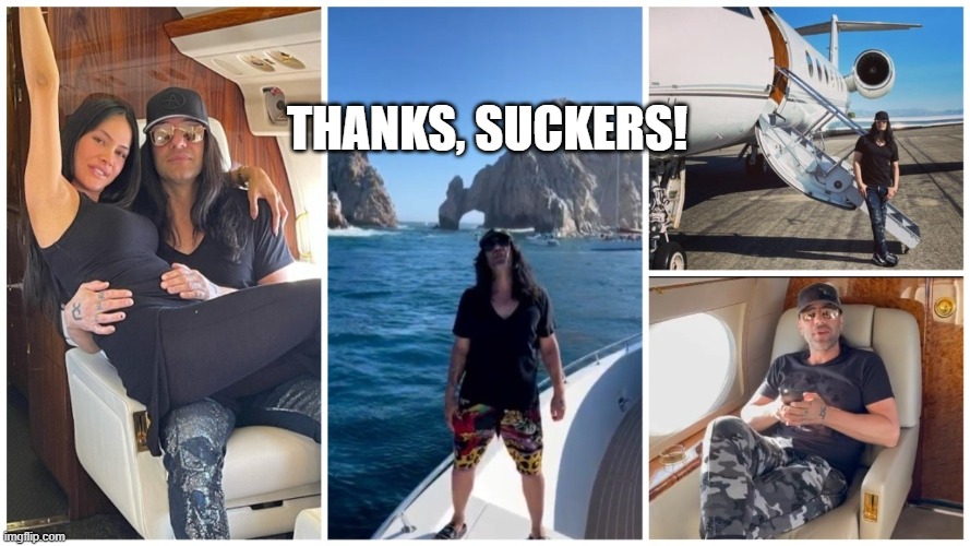 Does this sound like the actions of a humanitarian? Of course not. Someone as rich as Angel who actually possessed morals would have used his own overflowing bank account to keep business obligations paid for instead of using funds supplied by us taxpayers. Allow yourself to grasp that....you were struggling to buy toilet paper and canned soup while Criss Angel used your money on a private plane.