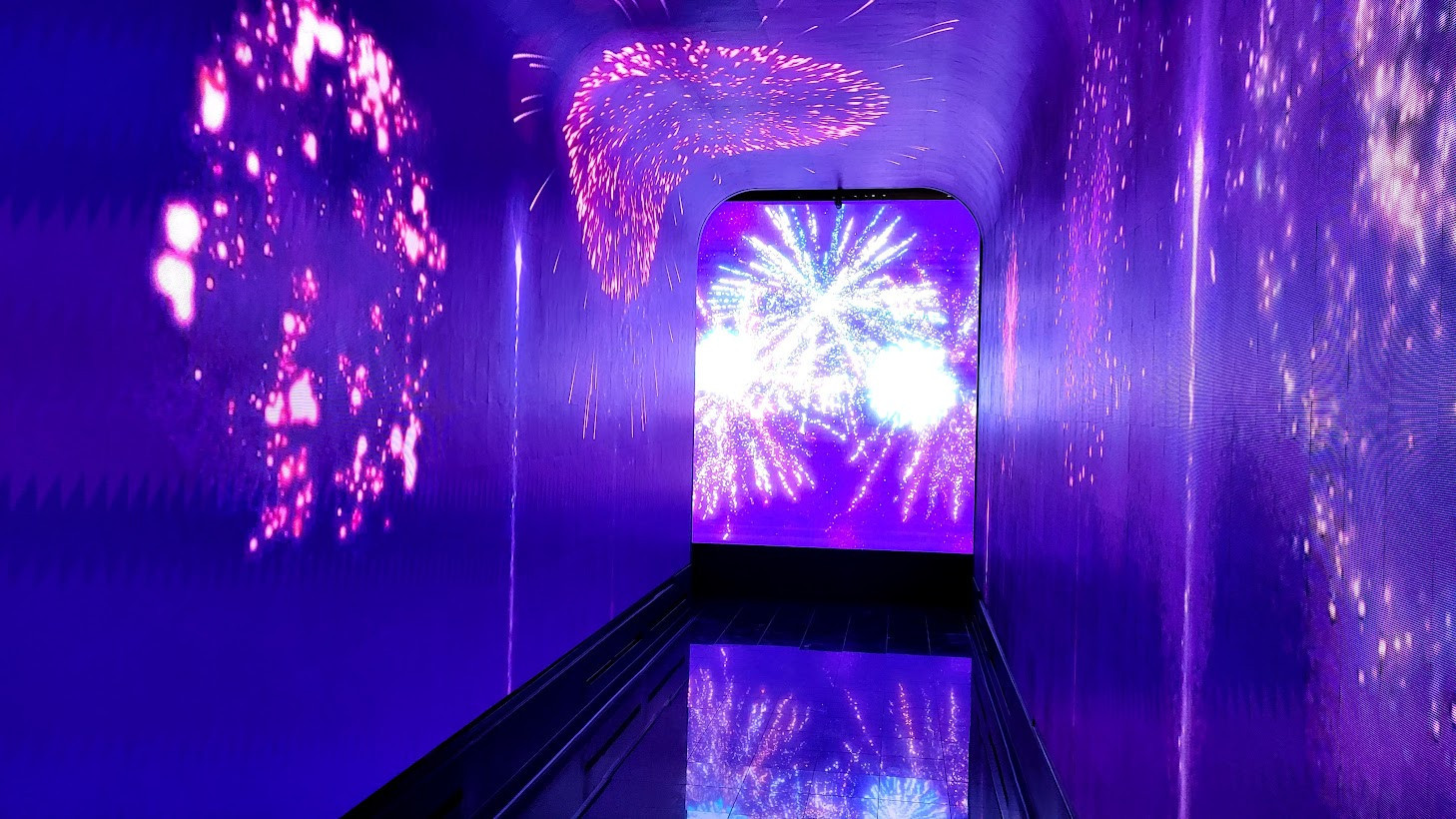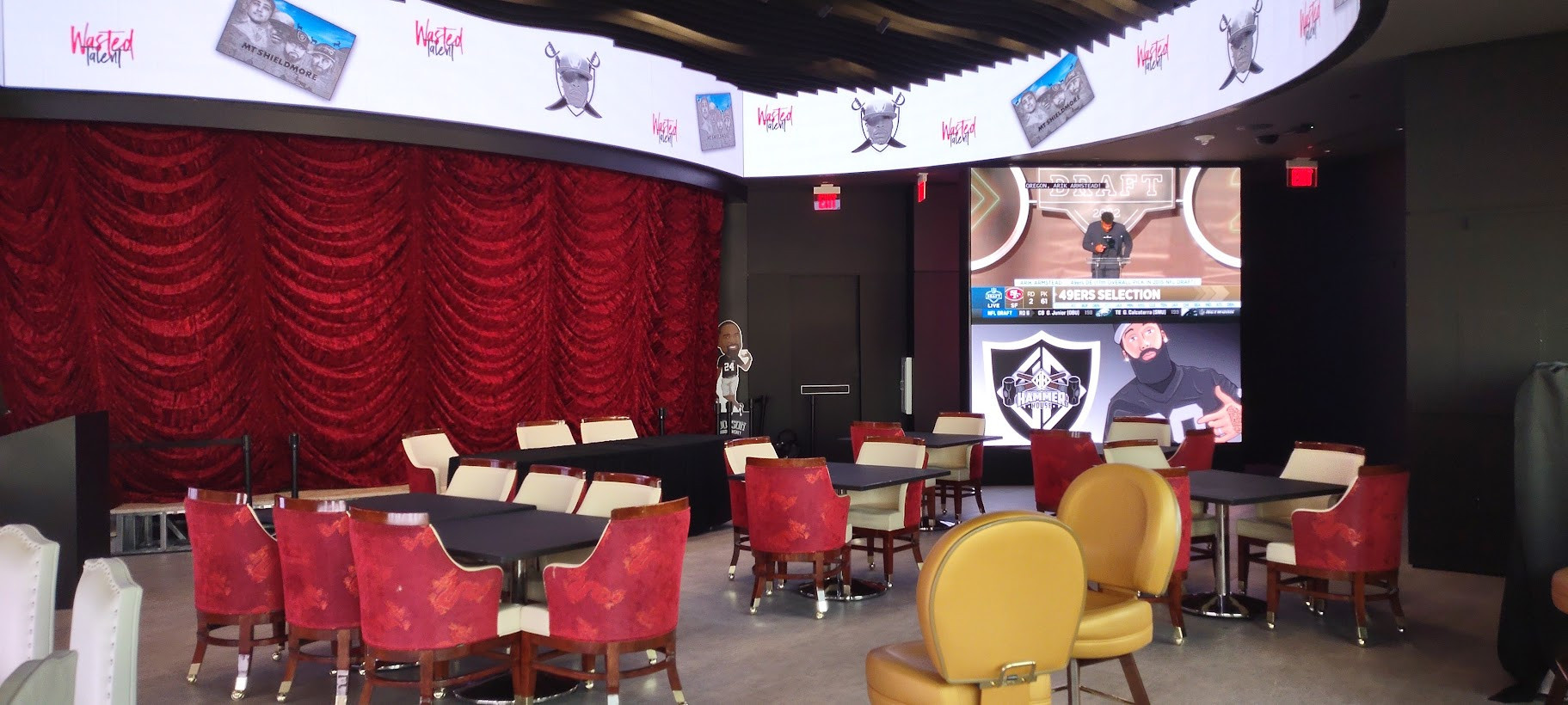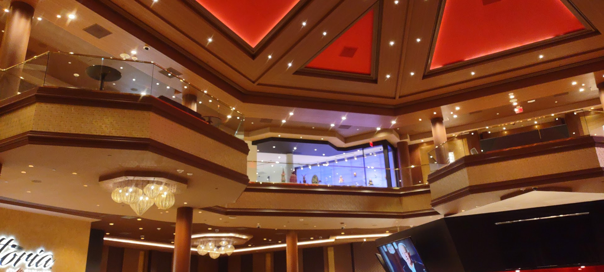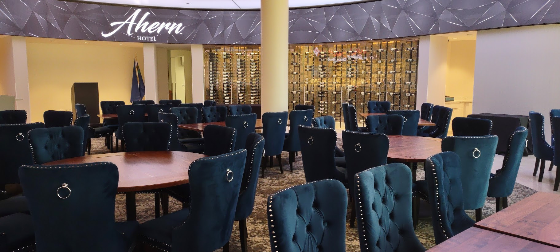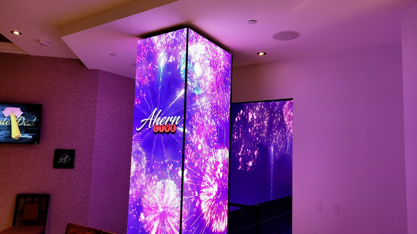 The next stop on Chef Joel's tour was AHERN LIVE, an intimate performance venue. Currently reserved for special events, the showroom is just waiting for the right act to launch an ongoing residency. Equipped with a full-service bar, more magnificent views, and luxurious seating, AHERN LIVE's showpiece is a high-tech video entrance. This tunnel-like corridor can be programmed to simulate any scenario from red-carpet paparazzi and patriotic fireworks to an under-the-ocean aquatic fantasy.