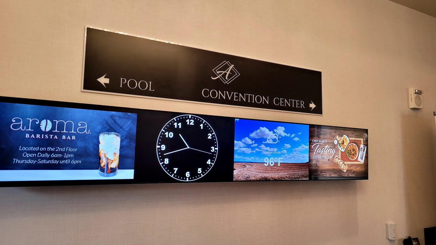 Your sweet tooth can be quickly satisfied with a stop at AROMA BISTRO BAR. Italian-inspired hot beverages are the perfect companion to Chef Fabrice's fresh-baked breads, pastries, and sandwiches. Traditional espressos, specialty coffees, Italian Soda, herbal teas, and matchas are served from 6 am. AROMA BISTRO BAR is located on the second level of the events building, just a few short steps from the parking structure entrance. Easy-in/easy access-out is a bonus perk for locals on the go.