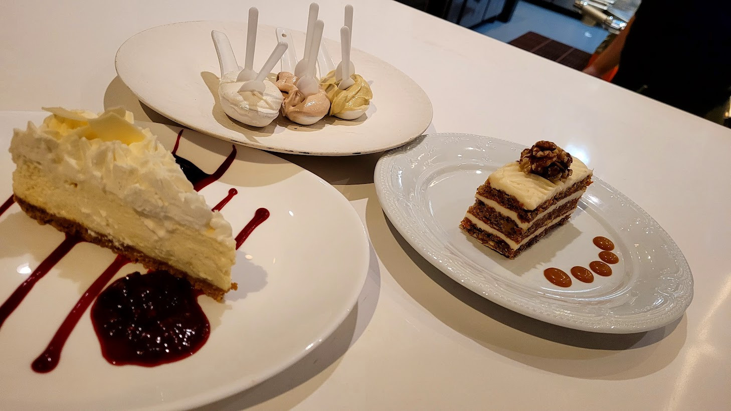 Next to the Steakhouse, another future endeavor already has some holiday-inspired concoctions proudly displayed behind glass. SWEETS BY FABRICE will be home to epic creations of the chocolate and sugar variety. Desserts by Executive Pastry Chef Fabrice Bendano are now available at Trattoria by Chef Marc. This writer and his guest might have indulged in a sampling during a recent dinner visit.