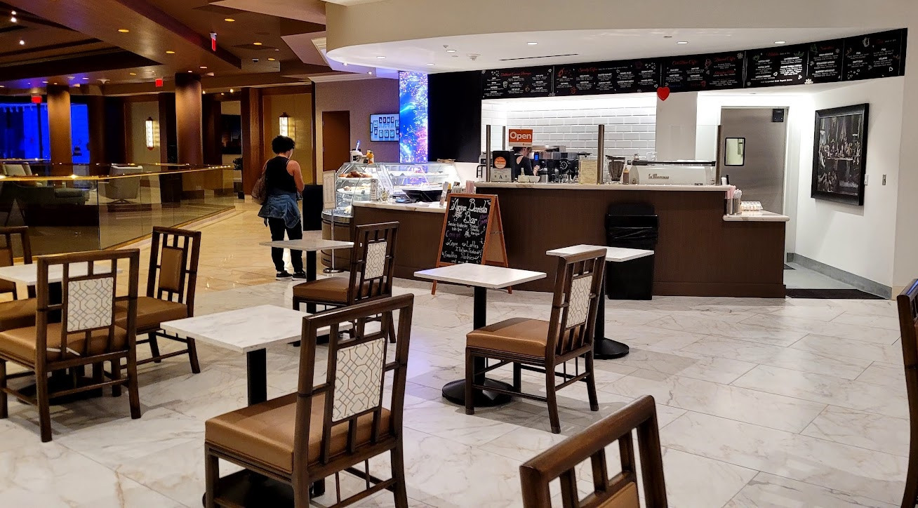 In April of 2019, local construction entrepreneur Don Ahern purchased the property and quietly began to repurpose its casino tower as an event and restaurant hall. Ahern invested $10 million to renovate rooms and redesign the entire interior as a non-gaming facility. Out with cherry blossoms and feng shui, in with clean lines, calming earth tones, and practical enhancements that would appeal to business guests.