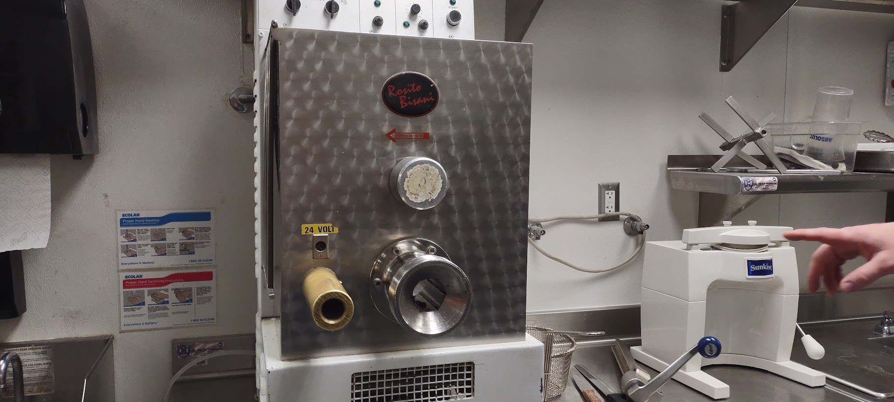 Our walkthrough took us deep into the catacombs of AHERN, where massive kitchens are capable of serving hundreds of conventioneers and event attendees. Rare and expensive culinary equipment includes a pair of dry-aging meat ovens and Chef Marc's personal, vintage pasta maker. Most of the kitchen areas previously created for preparing Asian cuisine have been redesigned at great expense for the new business model.