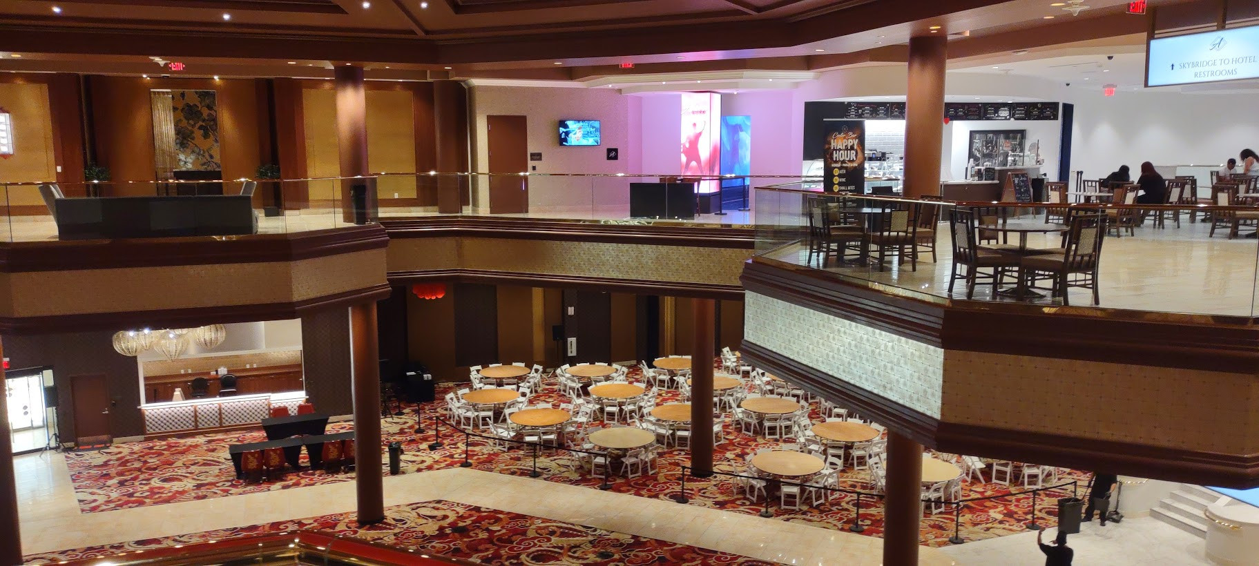 Spaces that once hosted table games have been reimagined as stages, tournament floors, and venues for weddings and trade shows. Corporate buyouts are available, and the entire property can be rebranded with full hotel wraps, interior wall banners, outdoor pillars, and related accessories. In-house expo services provide sound and lighting equipment, decor, and food/beverages.