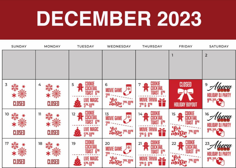Ahern Hotel will also host National Finals Rodeo viewing parties from December 13th through the 16th. Click here for a full list of their events and happenings.