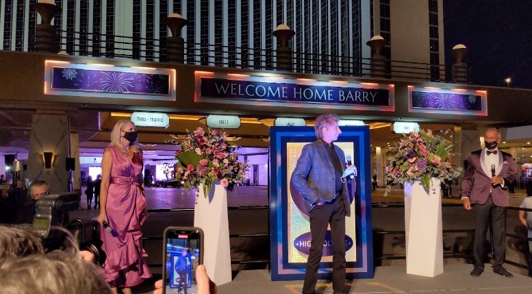 After a year and a half of COVID-imposed hiatus. the true king of headliner acts returned to Westgate Las Vegas. I'm talking about Barry Manilow, the ageless, one-of-a-kind wonder who unites young and old, gay and straight, all ethnicities, and every lover of wonderful music. It's very clear that Manilow loves his fans, otherwise, he'd be sipping cocktails around a pool (or at the Copacabana). Hundreds showed up to cheer Barry's return on September 21st with a splashy outdoor gala. He appeared to be very touched.