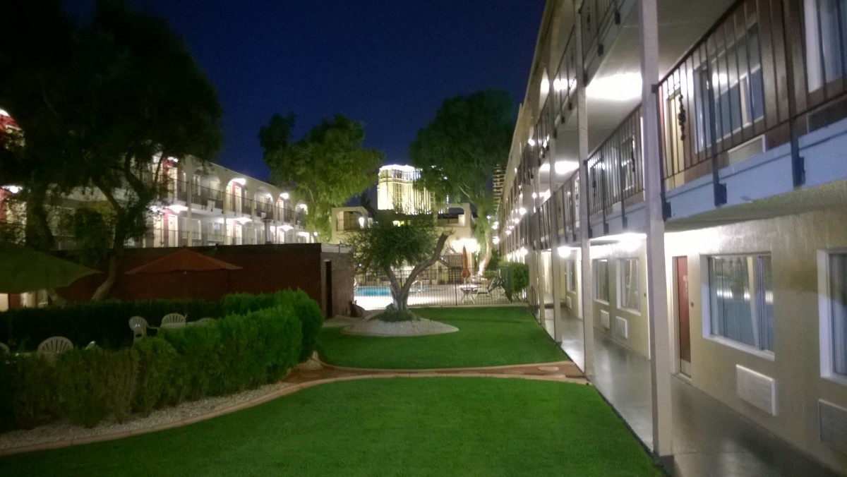 The idea of staying "on the cheap" in Vegas is considered by many to be a forbidden subject. But, why??? Not everyone has a large travel budget, but everyone should get the opportunity to enjoy our exciting city. Mardi Gras Inn & Hotel makes that possible with extremely inexpensive rates at their 300-unit complex. Rooms are spacious and simple yet clean, with a separate living area and dining counter. Several buildings surround a courtyard featuring a nicely-kept pool and gardens with a barbeque area.