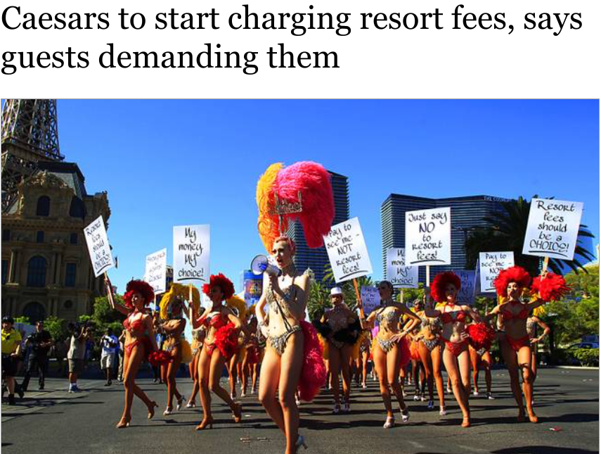 Remember when Caesars Entertainment properties advertised "No Resort Fees Ever"? That ended in 2013 with the following statement: "This is in response to the increasing demand from our guests to provide a package price instead of the inconvenience of separate fees."