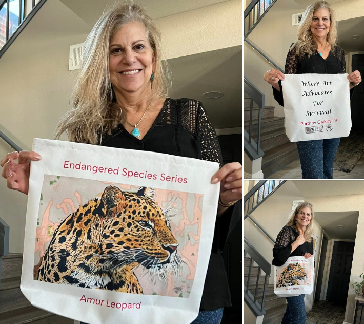 The Endangered Species Collection already made a debut of sorts on the Portnoy Gallery Facebook page. It displays eight pieces of the new series that have been transferred onto tote bags. As you may have guessed, a portion of sales goes to Safe Haven Sanctuary. Click here to order yours.