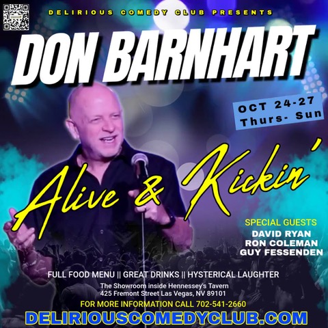 Beginning this week, Don Barnhart is back in action and at full strength with new material with his Alive & Kickin’ Comedy Tour starting with his residency at Delirious Comedy Club in Las Vegas every Thursday – Sunday at 7 & 9 pm inside the showroom at Hennessey’s Tavern on Fremont Street. For more information, please visit www.DeliriousComedyClub.com or call the box office at 702-541-2660