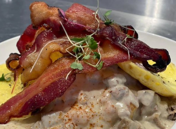 Pancakes, breakfast pizzas, and sausage rolls compete for your tastebuds along with thick multi-grain toast topped with fig ricotta cheese, apple slices, walnuts, and a drizzle of honey. See the entire Morning Menu by heading here.