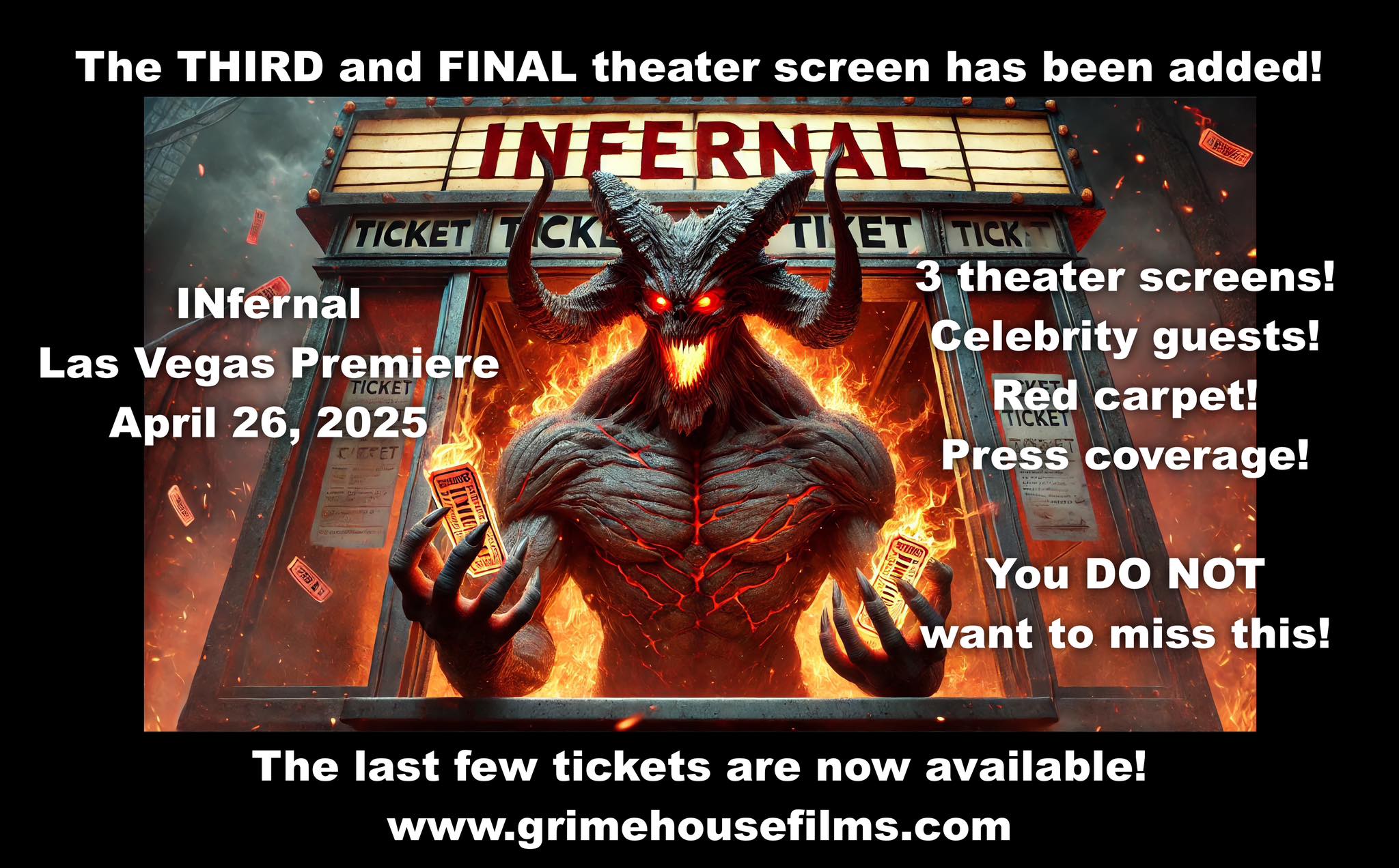 Due to INSANE demand, we’ve just added a THIRD theater screen for the INfernal Premiere! But here’s the catch… THIS IS IT.