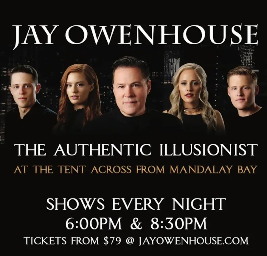 JAY OWENHOUSE: The Authentic Illusionist performs nightly at 7 pm. Tickets start at $54 (plus taxes/fees) and can be ordered here.