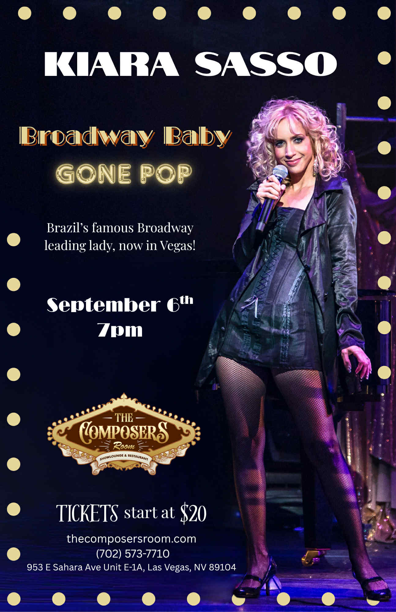 We first introduced VEGAS 411 readers to Kiara Sasso in January when she performed as part of Las Vegas Bellas. Now the Brazilian entertainer is striking out on her own with BROADWAY BABY GONE POP, her first solo Vegas production.