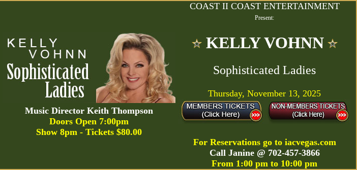 Just one day before Kelly Vohnn's showcase, heartbreaker Anthony Nunziata returns to the IAC with ITALY TO LAS VEGAS. Very much a New Yorker at heart, Mr. Nunziata forms a wonderfully personal bond with his audience, drawing them into every family tale and classic hit. This past June's performance (below) was simply stellar.