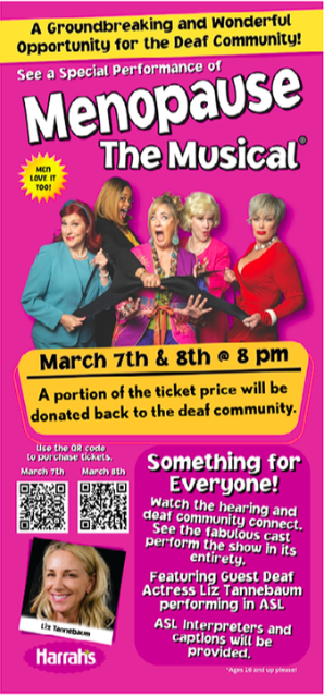 Here's an exciting event you won't want to miss. MENOPAUSE: The Musical is presenting a special two-night version of the show. It's being called "a groundbreaking and wonderful opportunity for the deaf community."