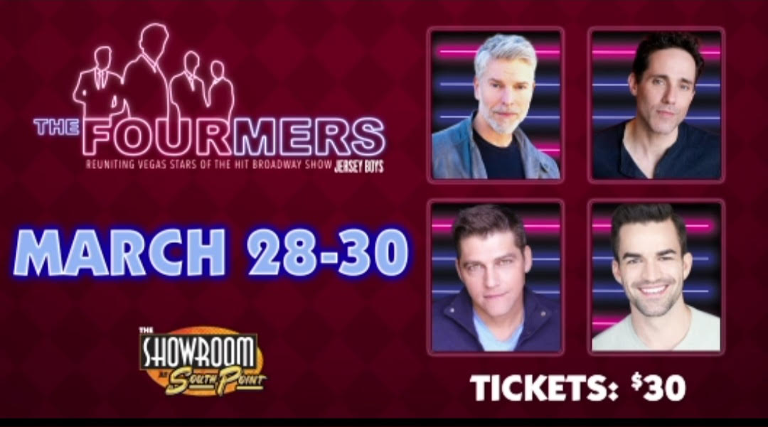 THE FOURMERS return to South Point Showro0m during the final weekend of March. A super-group of talent from Jersey Boys productions, this iteration will feature Jeff Leibow, Tony Lawrence Clements, Douglas Crawford, and Deven May. For tickets and showtimes, follow this link to the South Point ticketing page.