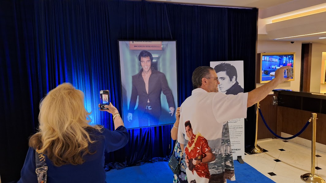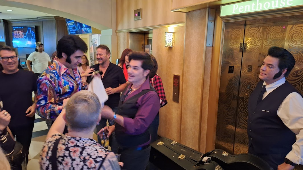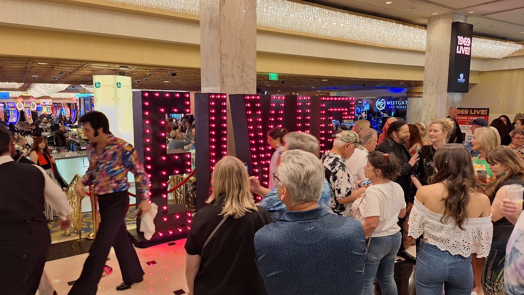 Thousands of fans converged on the Westgate to experience ELVIS 1969. The casino floor's International Bar offered nonstop tribute performances. The retractable walls of Westgate Cabaret were opened at 9 pm, allowing free access to The King Comes Home.
