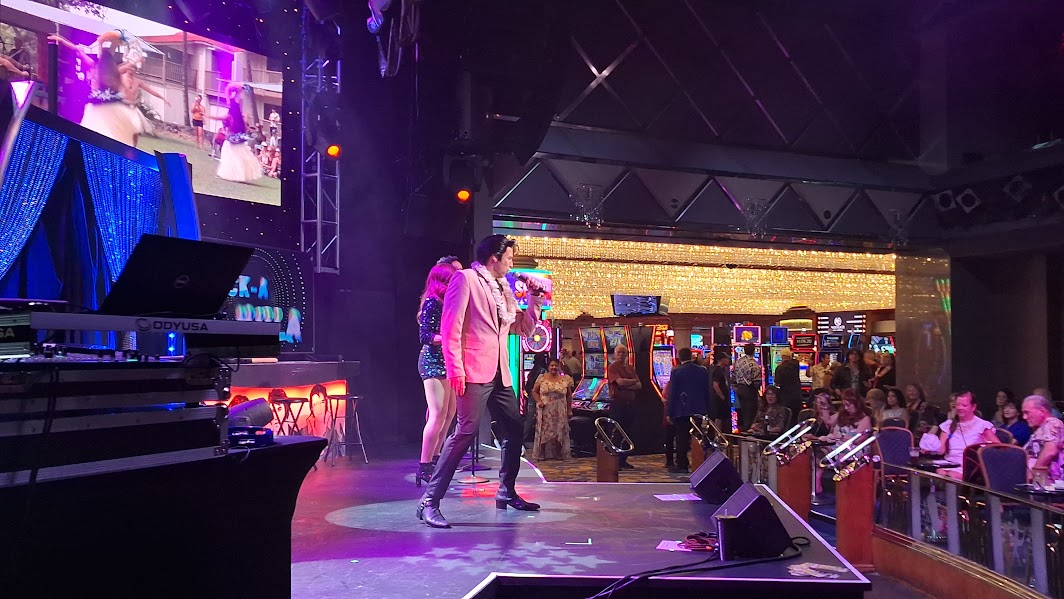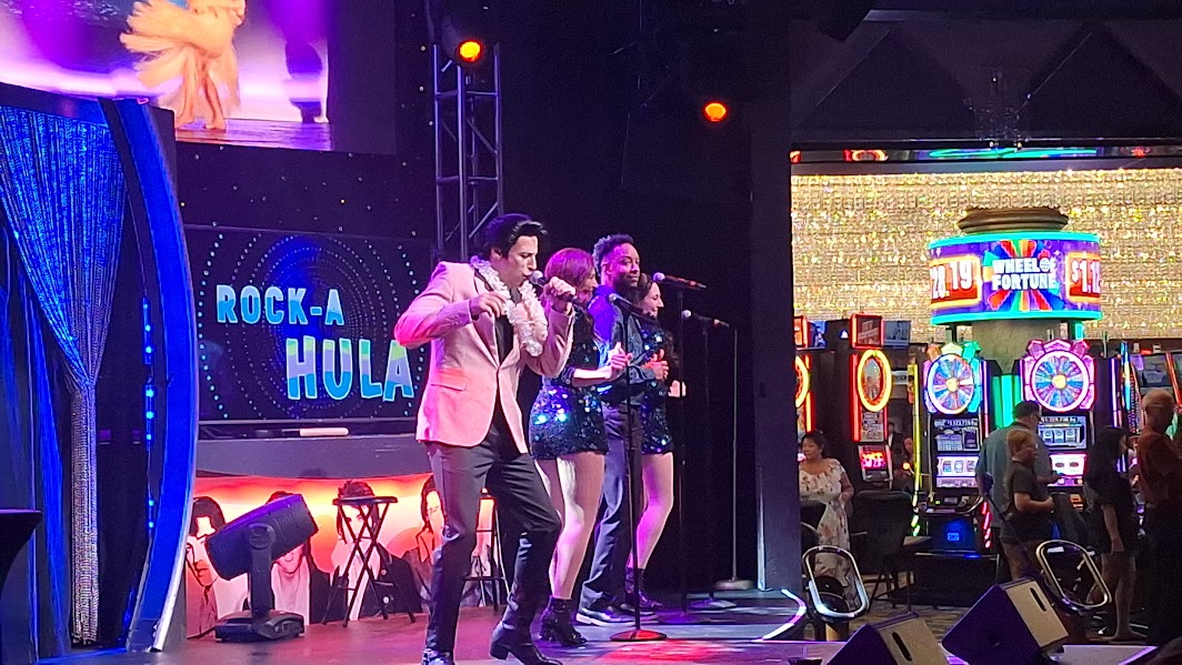 Then it was time for the main attraction. Lines to the International Theater extended toward the Superbook betting area for two performances of the ticketed main event: ELVIS 1969 LIVE - The King Returns. Both shows were attended at near-capacity.