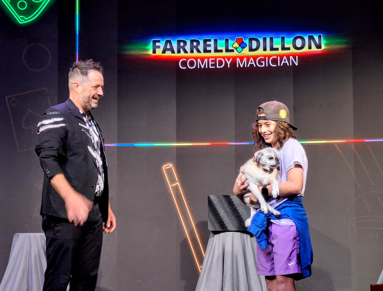 With lots of improvisation and unpredictable mayhem, no two shows are the same. Dillon delights in sharing the stage with his wife, Amanda, and their dog Eisley. Farrell Dillon performs daily at 4 pm (dark Wednesday). Tickets start at $42.79 inclusive and can be purchased here.
