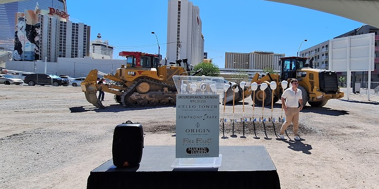 Last week in Sin City started with a groundbreaking event....literally. Politicians, land developers, influential business people, members of the media, and future residents converged on the building site for CELLO TOWER in Symphony Park.