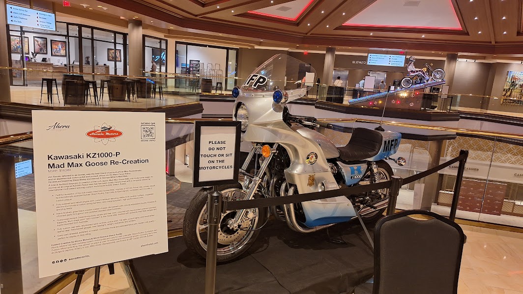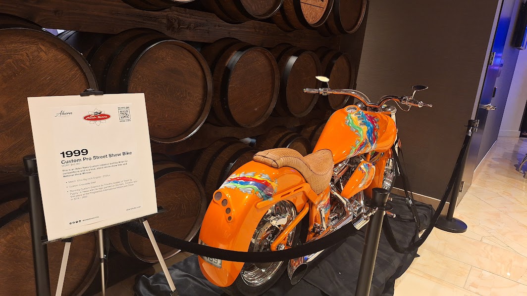While we're discussing the quiet, colorful little Ahern Boutique Hotel and Event Center, it's worth a visit to enjoy some of the visual flourishes. Most noteworthy is a collection of stunning one-of-a-kind motorcycles. They are currently displayed throughout the Event Center's second level.