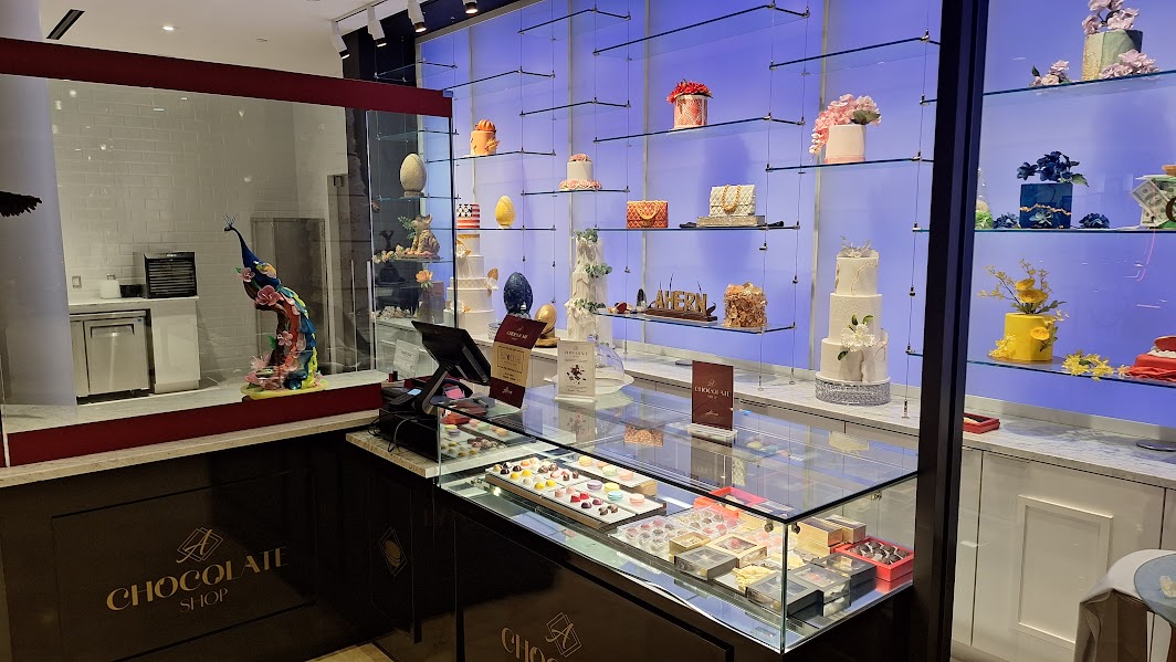For more eye candy, stroll over to the Ahern Chocolate Shop. Our visit occurred after hours, so no temptations overcame us. Stop by between 6 am and 8 pm at the adjacent Aroma Barista Bar to make a purchase. You can also order custom creations via this online form.