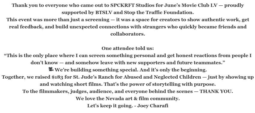 It's a fundraiser. A short film competition. A networking event for filmmakers and movie fans. It's the MOVIE CLUB LV Short Film Showdown. Creator and host Joey Charafi (VEGAS TRAFFIC) invited me back to judge the second edition last week.