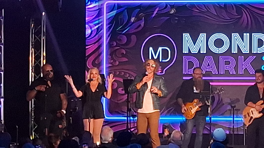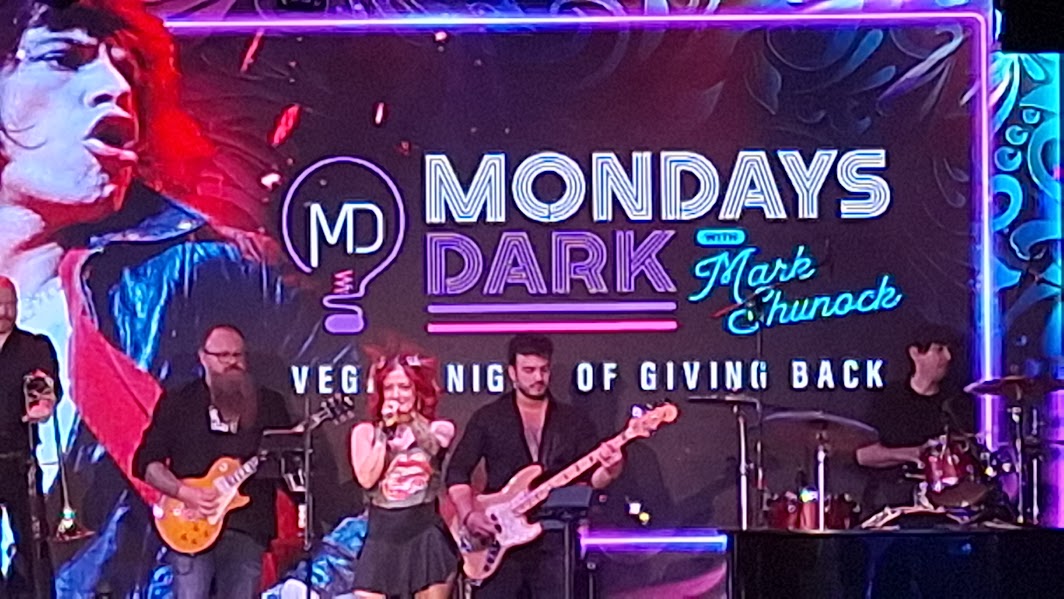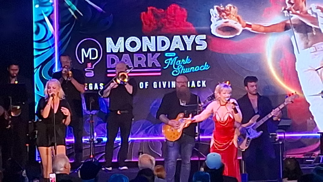 Shunock closed out the show by presenting a ten-thousand-dollar check to the Professional Fire Fighters charity. Mondays Dark will return on July 21st at 8 pm (tickets here) with a salute to Broadway. The featured non-profit will be Super Summer Theater at Spring Mountain Ranch State Park.