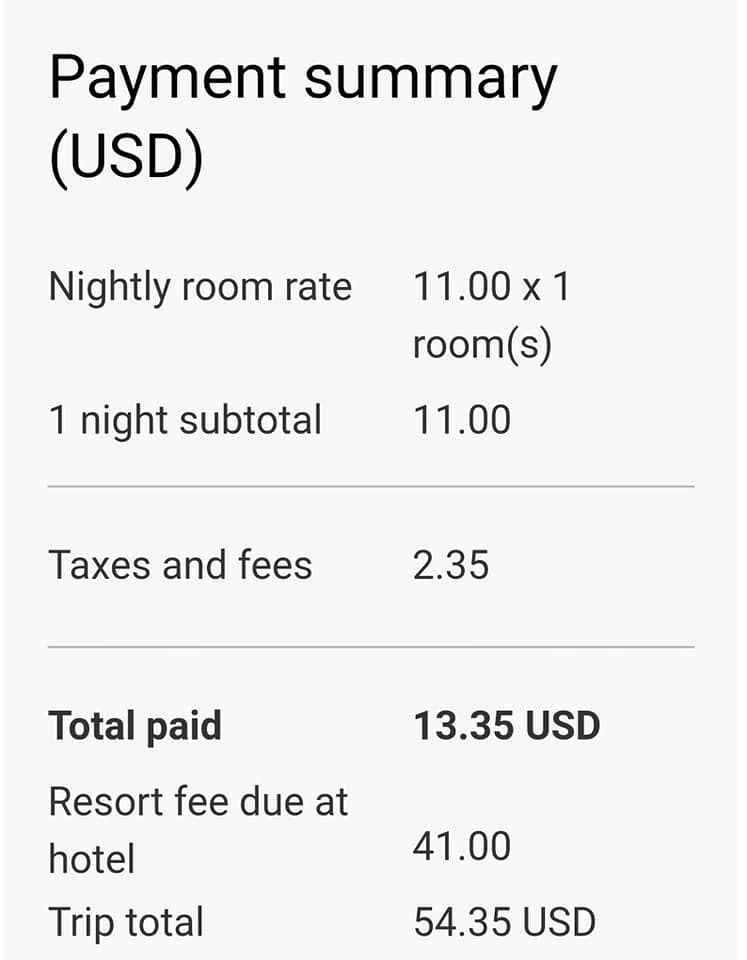 Of course, the current fascist regime tried to block the ruling, but it's finally here. Before yesterday, when you saw a room very falsely advertised for $11 a night, it was more than quadruple that once the resort fee and taxes were added in. Now, it'll simply be $52 plus tax. So, for all of you who said for years, "Just add them together", you got your wish.