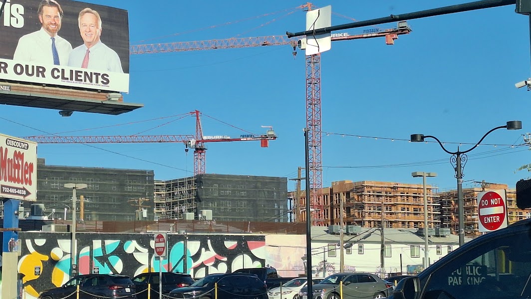 In the past five years, the Arts District has exploded with bars, restaurants, taverns, community theaters, art galleries, and shops. But here's where success turns sour. Residential towers like the ones above are rising quickly, turning a once-rundown area into a trendy neighborhood. That means new opportunites for Clark County officials (and others with deep pockets) to screw things up for a third time.