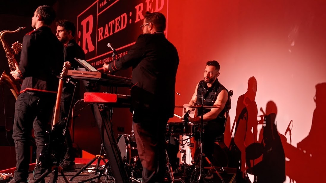 https://www.dailymotion.com/video/k3IAYrs3x8Ef9HxjhFT "A modern take on such-and-such" is an over-used marketing approach for Vegas shows. Most topless revues reference classic burlesque in their descriptions but don't truly offer anything new. RATED: RED is its own beast. The cast of roughly sixteen consists of men, women, and a few androgynous members who are all young, athletic, very attractive, and extremely talented. The show is thankfully devoid of a blabbermouth host (hear that, Magic Mike Live?). In fact, the only talking you'll hear is from a few pre-recorded transitions and the vocals of voluptuous singer/dancer Sophia Monica (Zombie Burlesque). Studly Musical Director Steve Weiss (sporting a bare chest and bulging biceps) and his musicians Sam Lemos, Nick Schmitt, and Jason Corpuz fill the room with a sultry atmosphere as guests arrive, then pop back onstage throughout the production. The rest of the sounds are provided by pre-recorded tracks, much of it revamped versions of songs from the likes of Britney Spears, Billie Eilish, and Dua Lipa. Cheeky titles like Pussy Liquor and Gucci Cucci will remind you that none of this is to be taken very seriously.