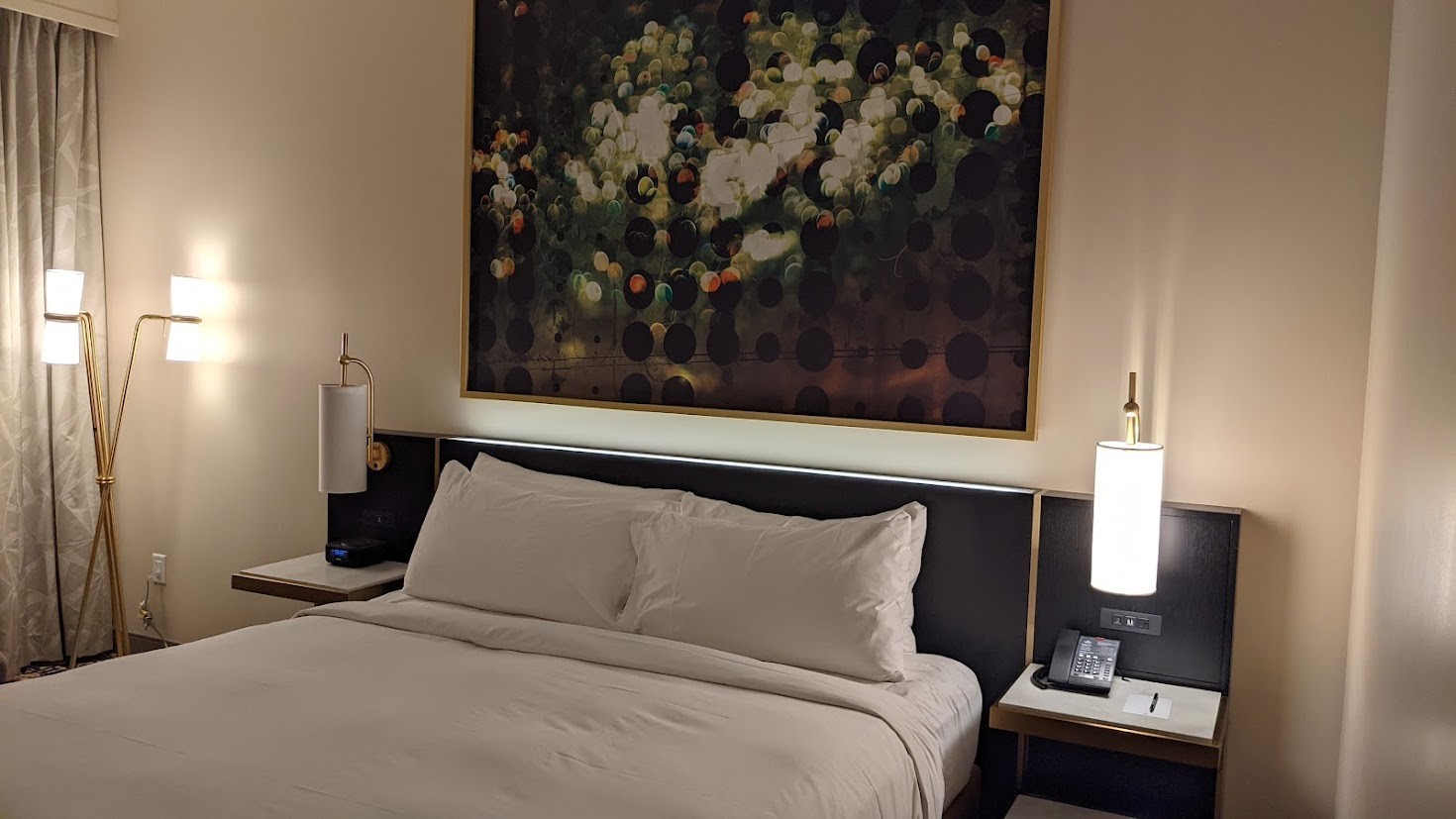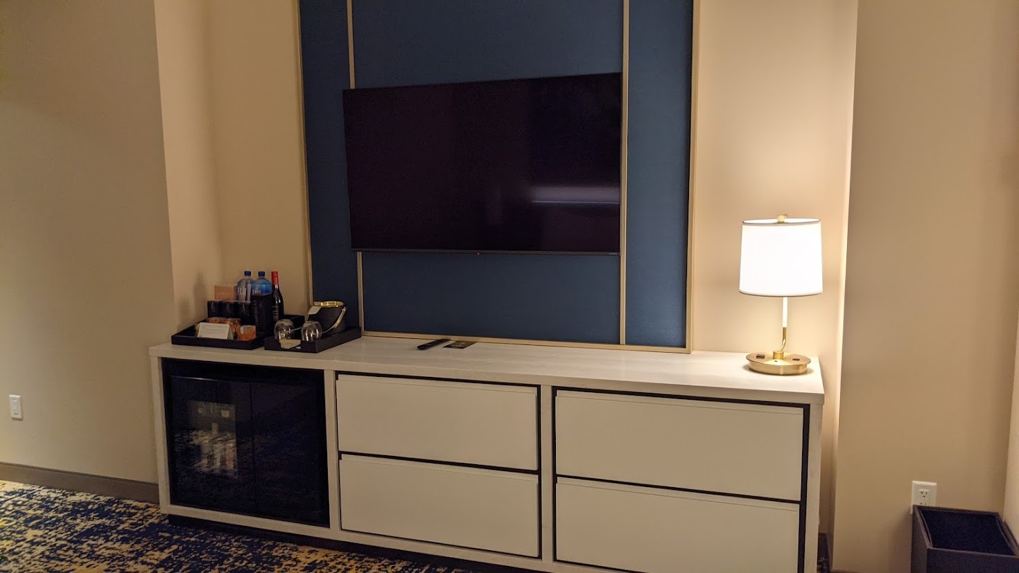The standard rate for a Deluxe King Room starts at $135.00, but that has already plummeted due to poor occupancy. I was able to reserve for only $29.00 through Agoda.com. A mandatory daily resort fee of $45 plus tax is added, which includes 5G internet access for up to eight devices, smart TV casting ability, and a host of insipid and worthless perks: 10% off spa or fitness retail, 5% off spa or fitness treatments, 5% off cabana experience, 5% off 2 pool chair experience, and unlimited local and toll-free calls.