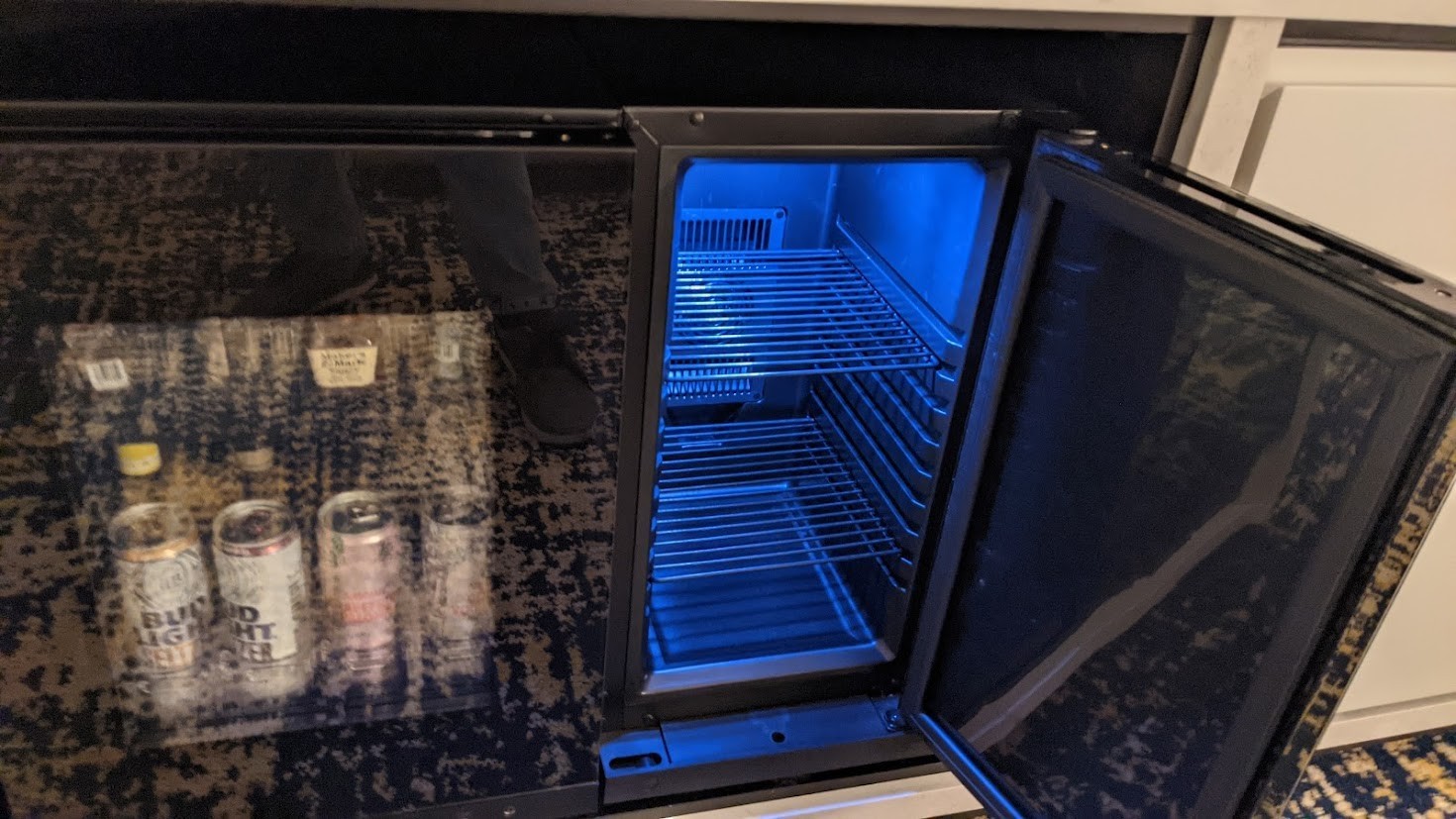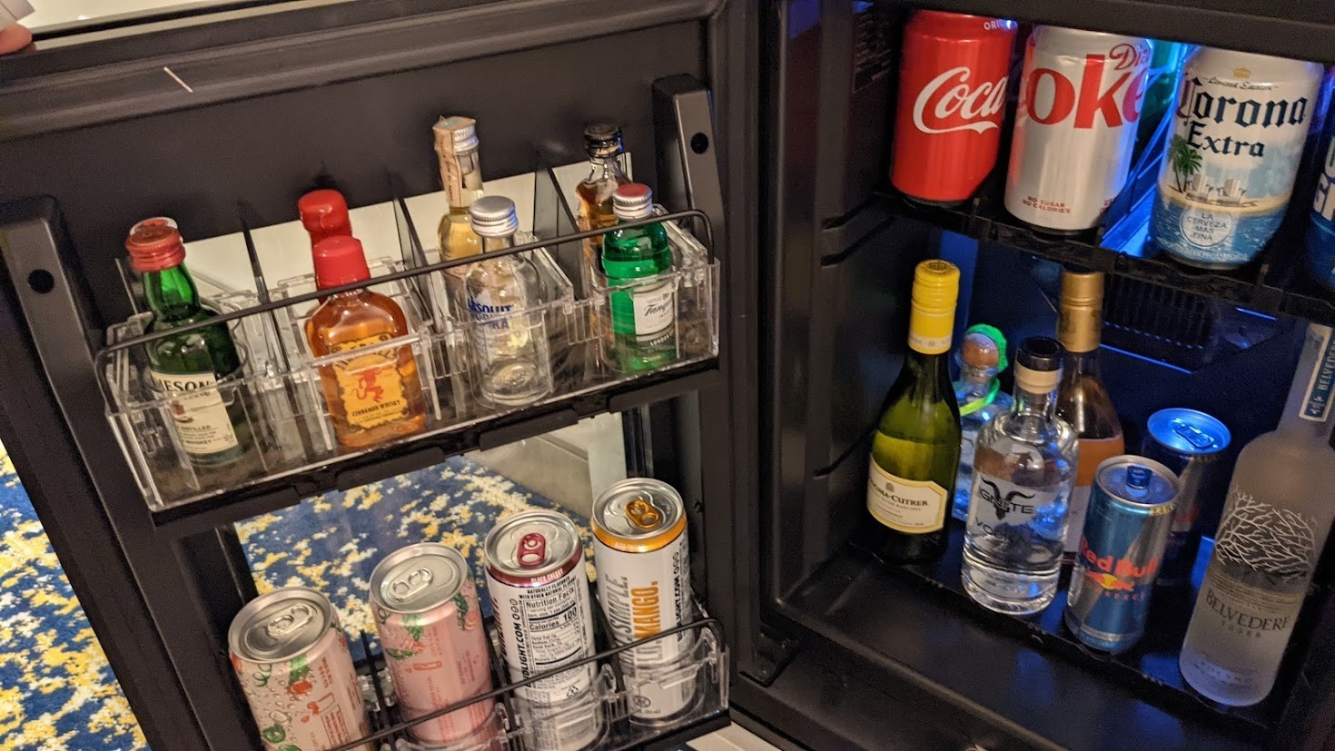 Other in-room amenities include a mini-bar, digital clock, and supposedly a safe (which I never found). There is a small refrigerator for guests but be warned that if you leave anything behind in the mini-bar, you will be charged $25 for housekeeping to remove it. Nothing says "hospitality" like being charged for a hotel to throw your shit away. They'll also charge you an extra $50 if you want to check in before 3 pm.