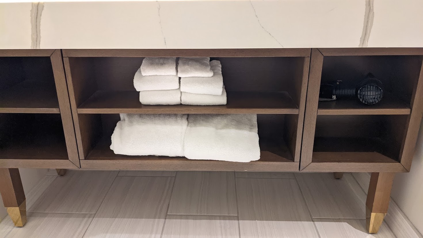 Having plenty of USB and standard power outlets on each side of the bed was nice, but also to be expected in this day of electronic dependence. The absence of a desk in a hotel situated across from the Las Vegas Convention Center was odd and an unfortunate misstep. At least wi-fi was fast and steady.