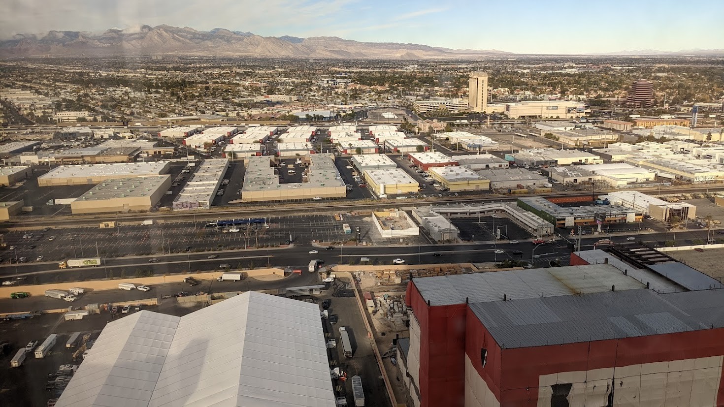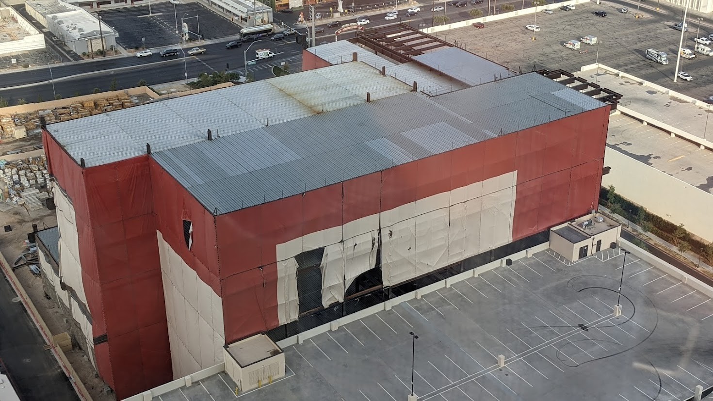 Another important factor for many Vegas visitors is the view from their room. Since I'd received an upgraded sightline, I was eager to check it out. What I saw was less than spectacular. Stripper clubs, porn shops, an industrial section of town, and directly below me, an incomplete Resorts World structure that was wrapped in already-torn canvas. Remember, you'd normally pay extra to experience these sights. Just lovely.