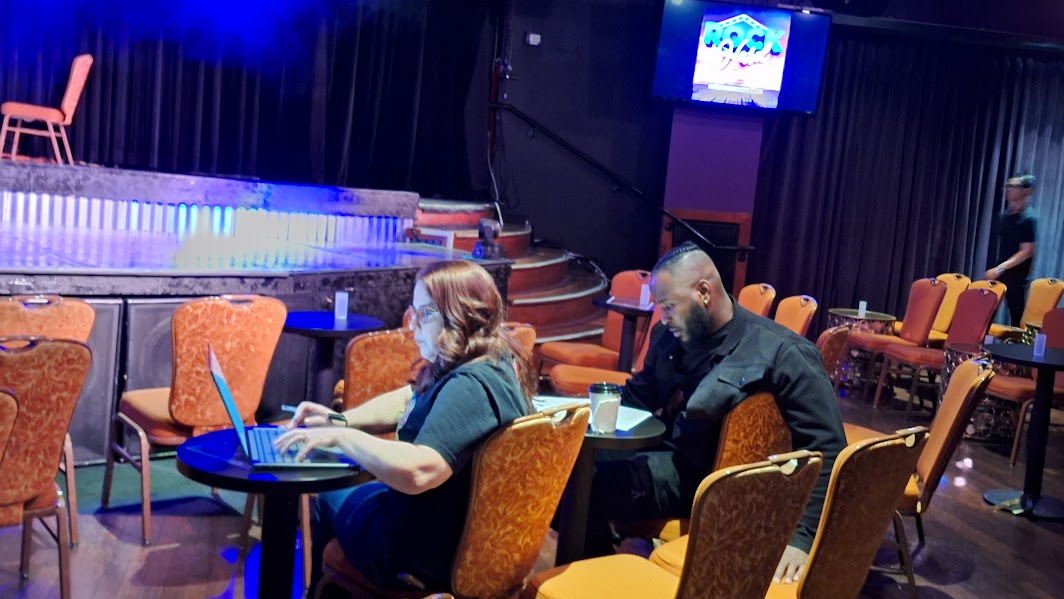 A lady with heavy daily responsibilities, Denise understands the need to cut loose for "girl time". ROCK HARD's goal is to satisfy that itch. VEGAS 411 has been following the show's creation from conception discussions through the audition process (above) to rehearsals, coming together for a debut performance on Friday, April 11th.