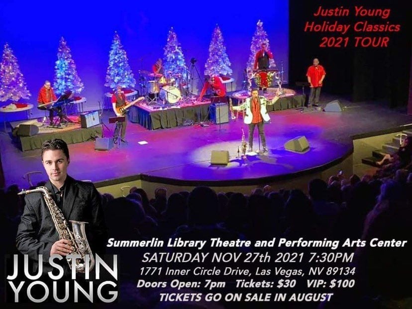 Justin Young Holiday Classics Tour kicks off on November 27th at 7:30pm. Tickets are $30 and available here. The show is nearly sold out. Summerlin Performing Arts Center is located at 1771 Inner Circle Drive, Las Vegas NV 89134.