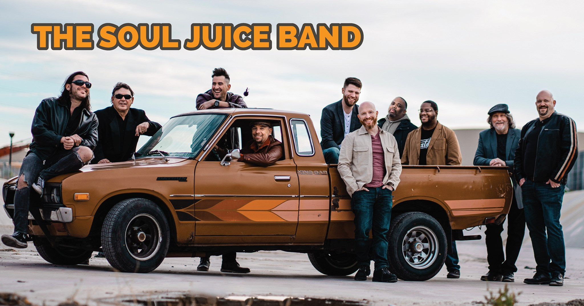 Soul Juice describes itself as a "song-writing band" infused with funk, soul, and a wall of blazing horns. Their original music is drenched in energy, utilizing saxes, trumpets, and trombone to create an unusually powerful signature. Familiar hits take on a whole new meaning when heard through Soul Juice Band orchestrations. Then lead singer David Tatlock takes things even higher with superstar-quality vocals.